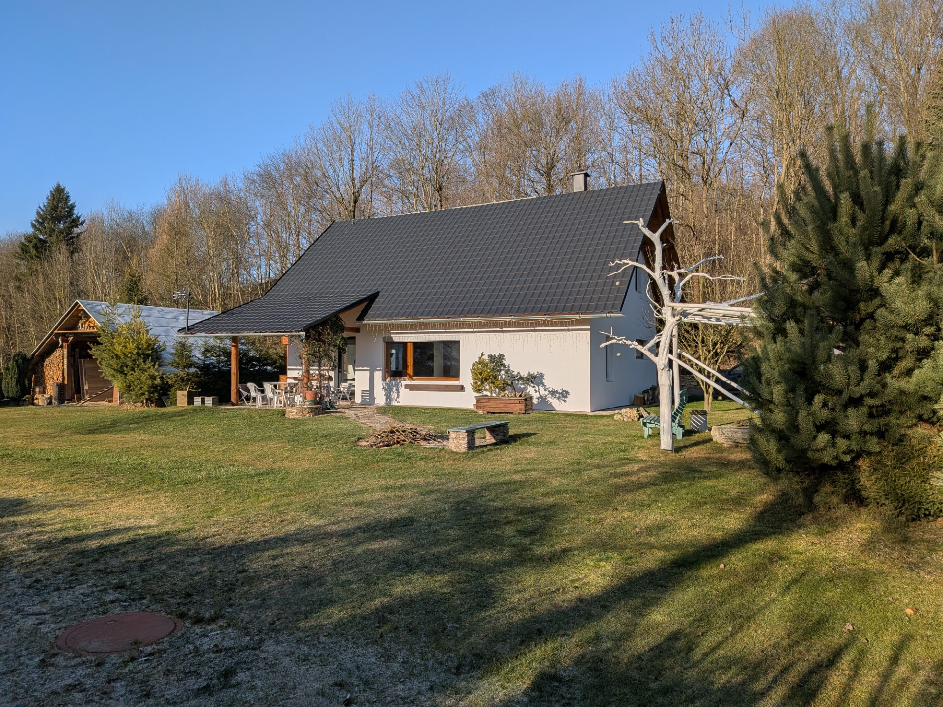 Zahrada o rozloze přes 3500 m² nabízí dostatek prostoru pro klid i zábavu. Najdete zde jezírko, ohniště pro večerní posezení a stylovou kadibudku, která dodává místu nádech starých časů. Pro dobrodružnější povahy je tu také možnost rozšířit ubytování o stanování nebo spaní pod širákem.