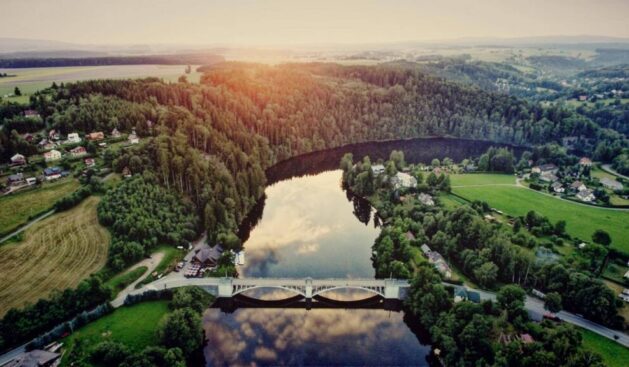Rozsáhlá přehrada obklopená přírodou, ideální pro procházky, relax na břehu, popřípadě vodní sporty.