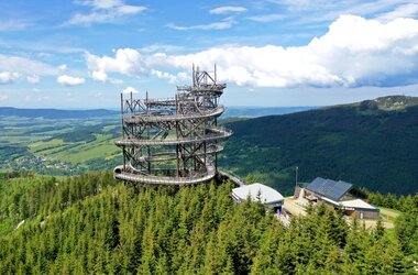 Dominanta Orlických hor s úžasným výhledem na celé okolí. K rozhledně se dá dojít pěšky nebo dojet autem, nahoře je i horská chata s občerstvením.